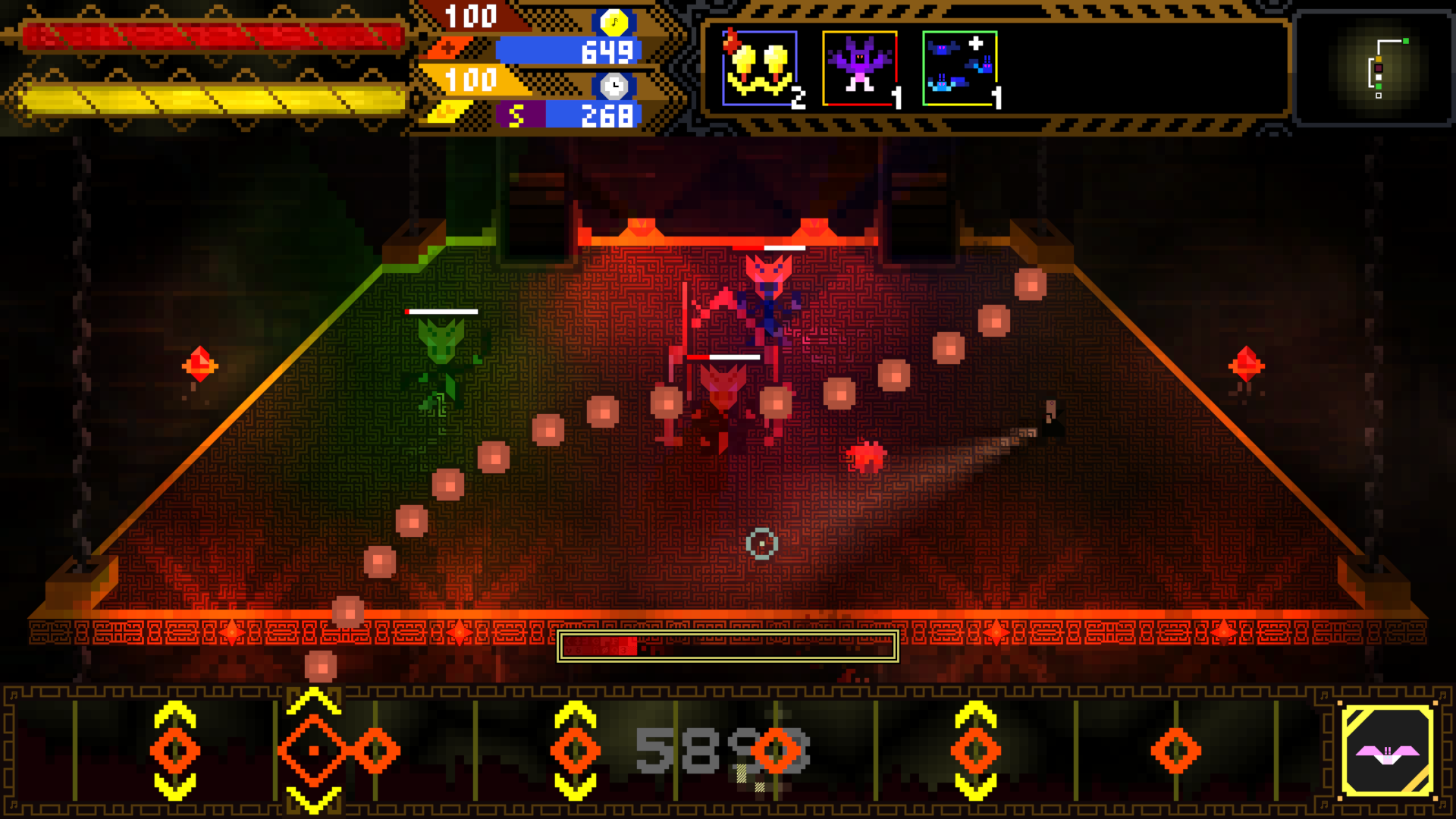 Everyone loves a good boss fight, so naturally our game has several! We want each one to be a unique experience, so they each have their own special attack patterns and soundtracks.